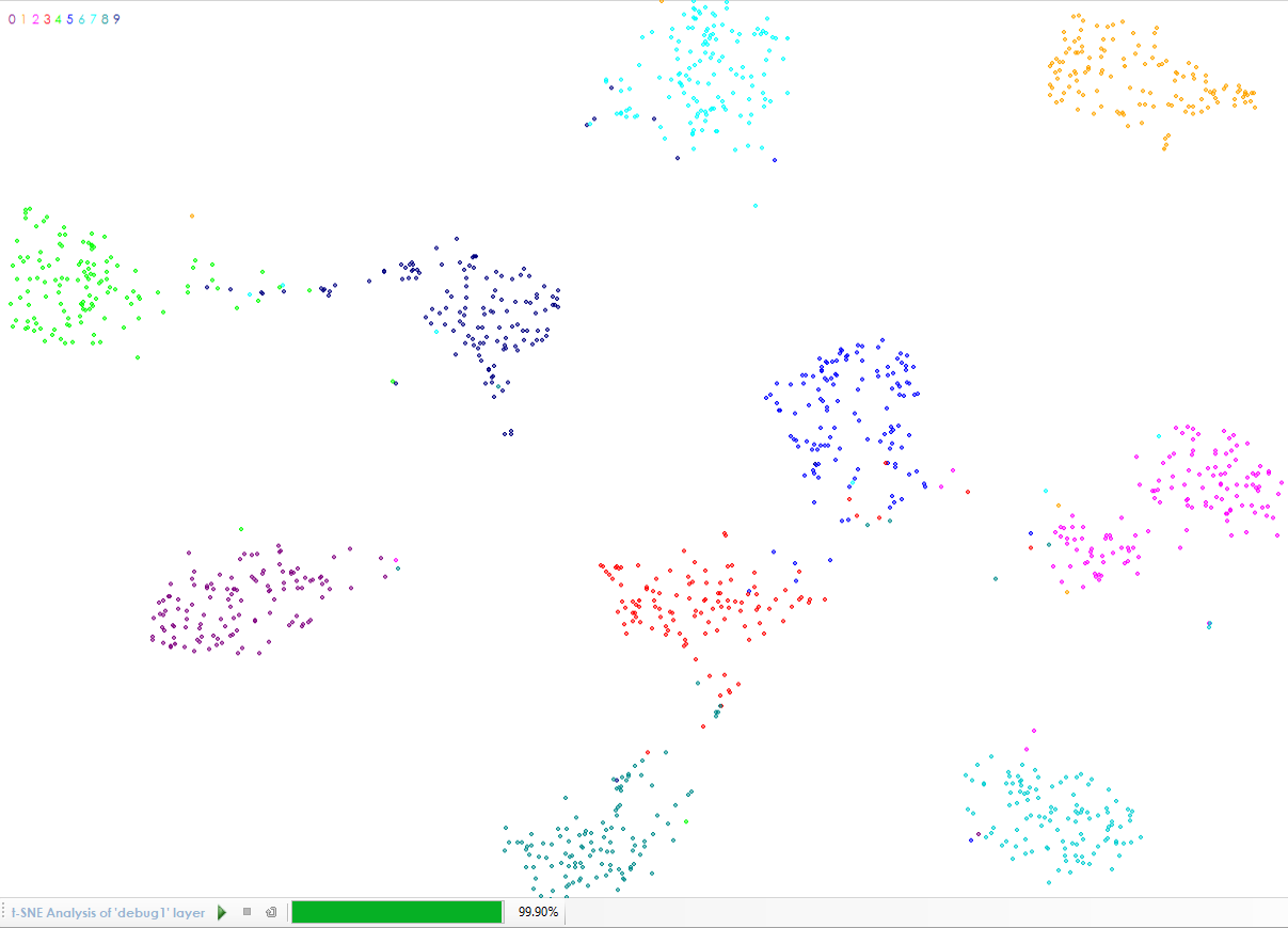 Once trained, right click on the Debug Layer and select ‘Inspect Layer‘ to run the TSNE algorithm on a subset of the stored embeddings. As shown below, the TSNE algorithm demonstrates a clear separation between each of the learned embeddings for each anchor image label.